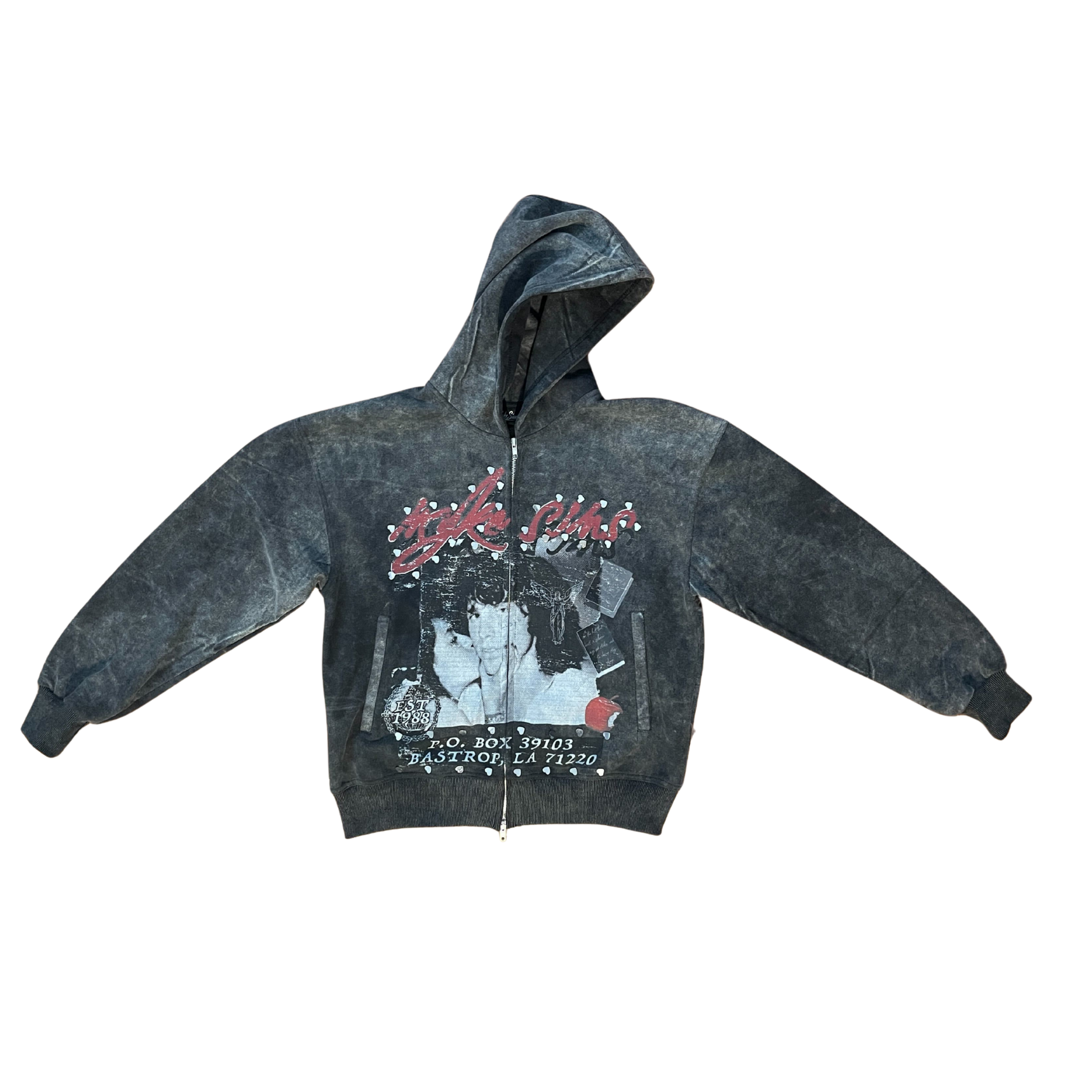 Fueled by rebellion and raw nostalgia, the Original Sin is crafted from heavyweight fleece with hand-applied distressing and bold metal hearts lettering spell out Myke Sims. Carry the spirit of the South and the soul of a runaway superstar. Come with a MS Wallet Chain!