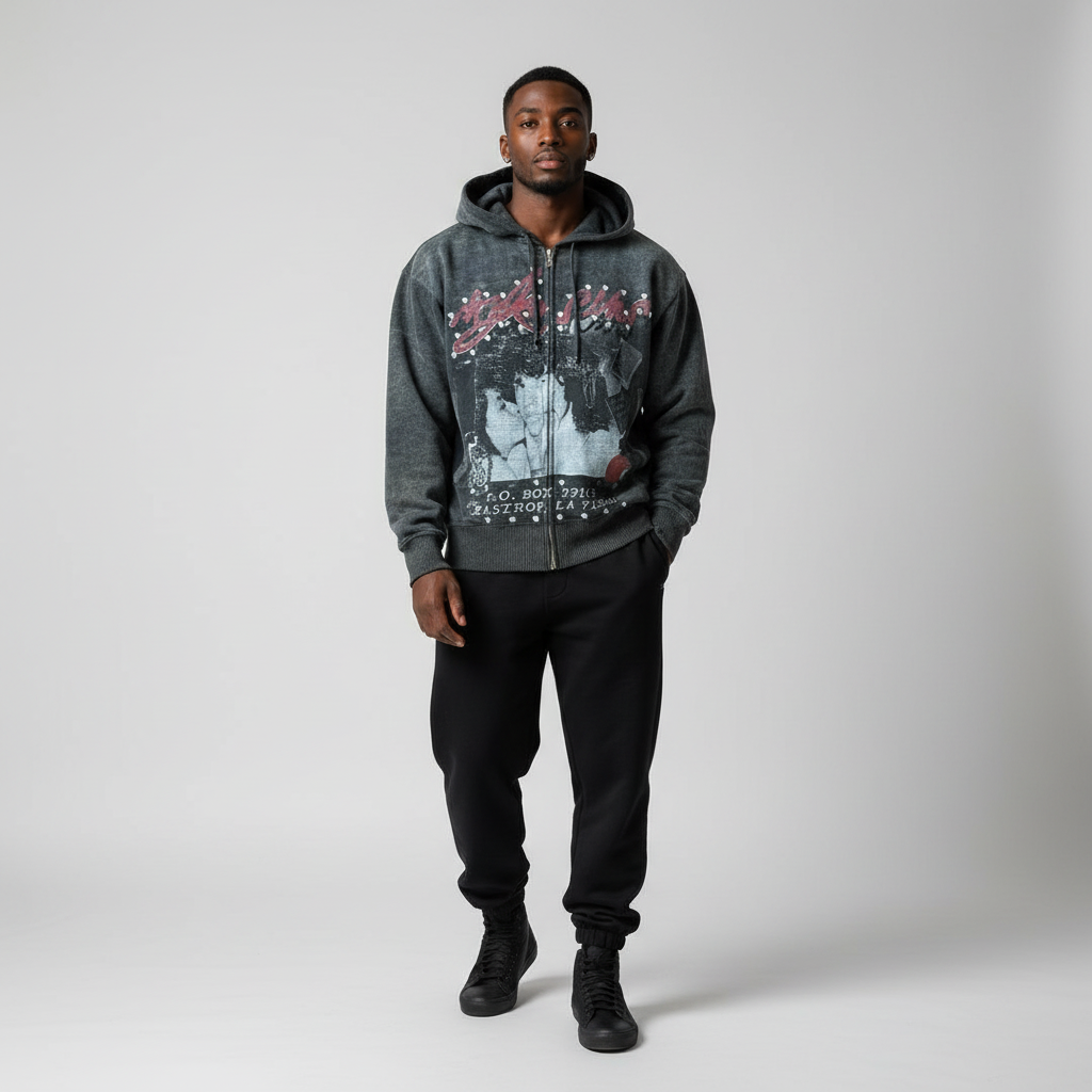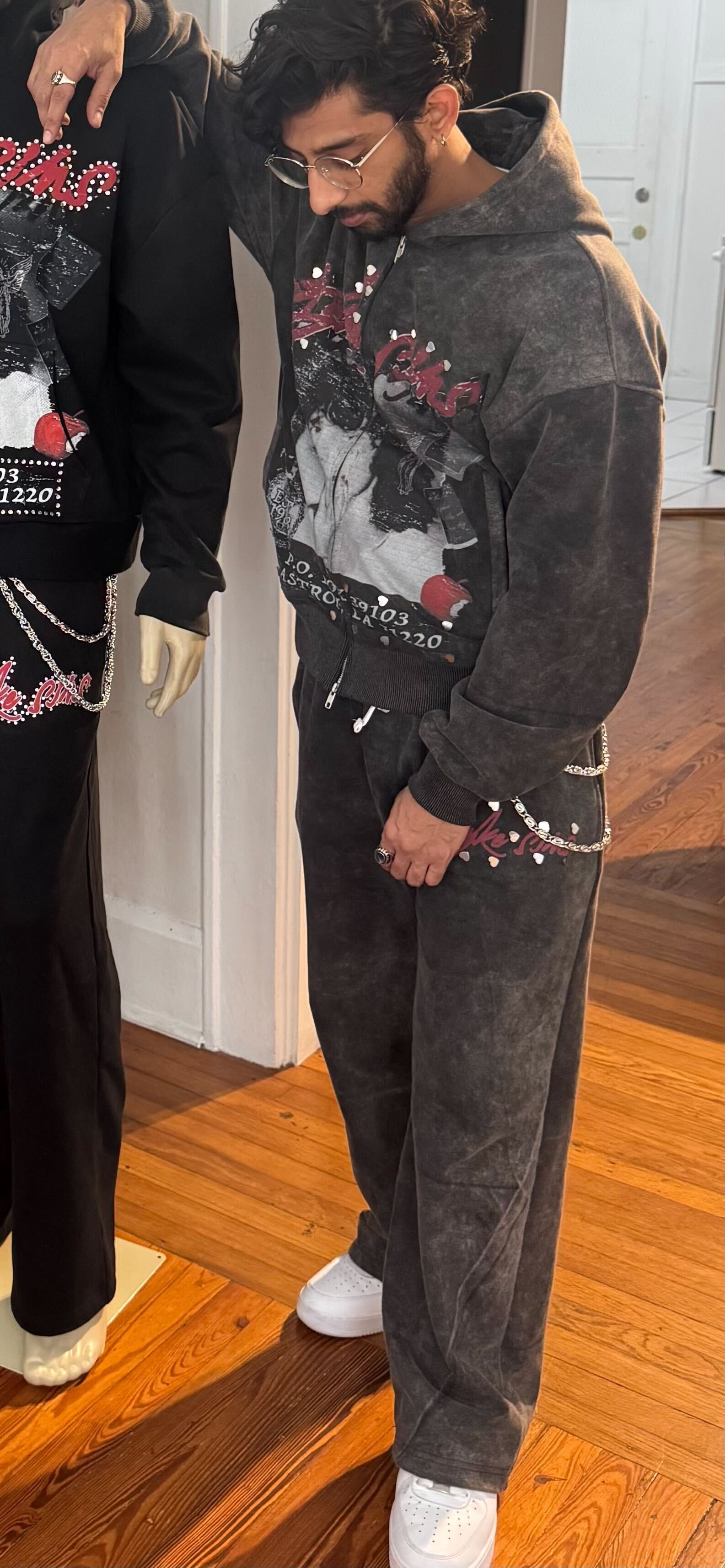 Vintage Acid Washed Hoodie + Pants Set + MS Wallet (SOLD AS A SET ONLY)